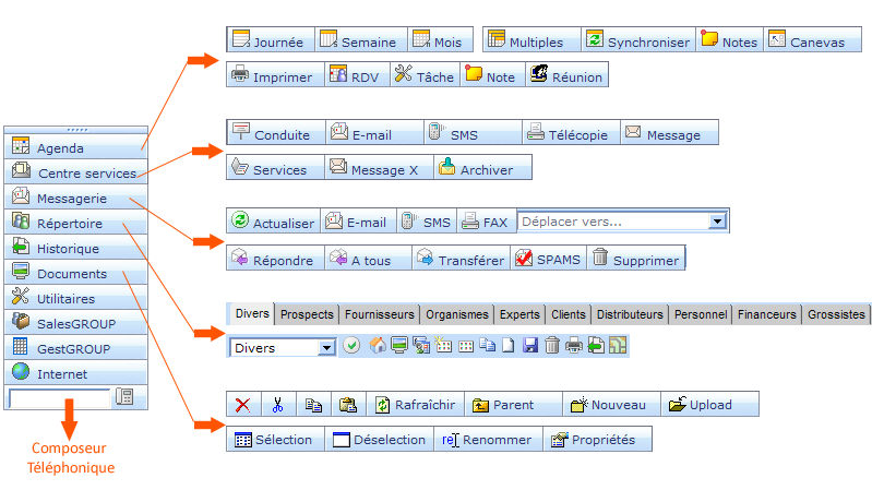 - Concernant le l'environnement Bureautique, l'accès aux documents dans les différents espaces se réalise par la sélection de l'espace :