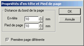 Les distances paramétrables, permettent d'affiner les distances Haut de page -> en-tête et Bas de page <- Pied de page.
